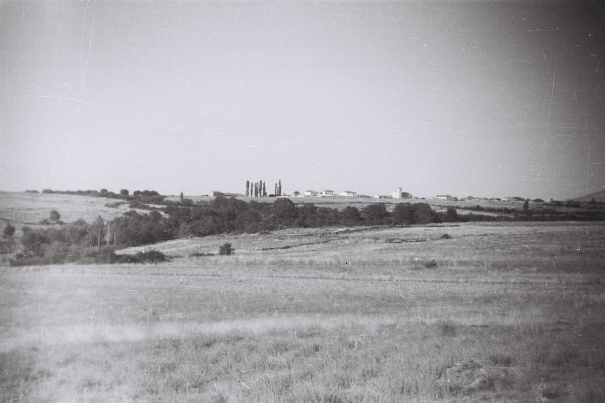 A medida que se aproximaban a San Cristóbal de Segovia desde lo que hoy sería la carretera de circunvalación, empezaban a apreciar pequeñas casas y pajares en torno a la iglesia actual, como edificación más destacada del pueblo. Todo ello quedaba rodeado por las “eras”, prados y arboledas, tal y como se ve al fondo de la imagen. Esta zona, que apreciamos en el horizonte y a la izquierda del núcleo de casas, en la actualidad se encuentra ocupada por numerosas urbanizaciones y edificios públicos como el colegio (CEIP Marqués del Arco), el Ayuntamiento o el pabellón polideportivo, en el que te encuentras capturando el código QR y donde puedes admirar el mural intergeneracional realizado en 2020 para homenajear a todas las generaciones del municipio, desde los más mayores a los más pequeños; es un espacio de “tradición, cultura y vida” en San Cristóbal.